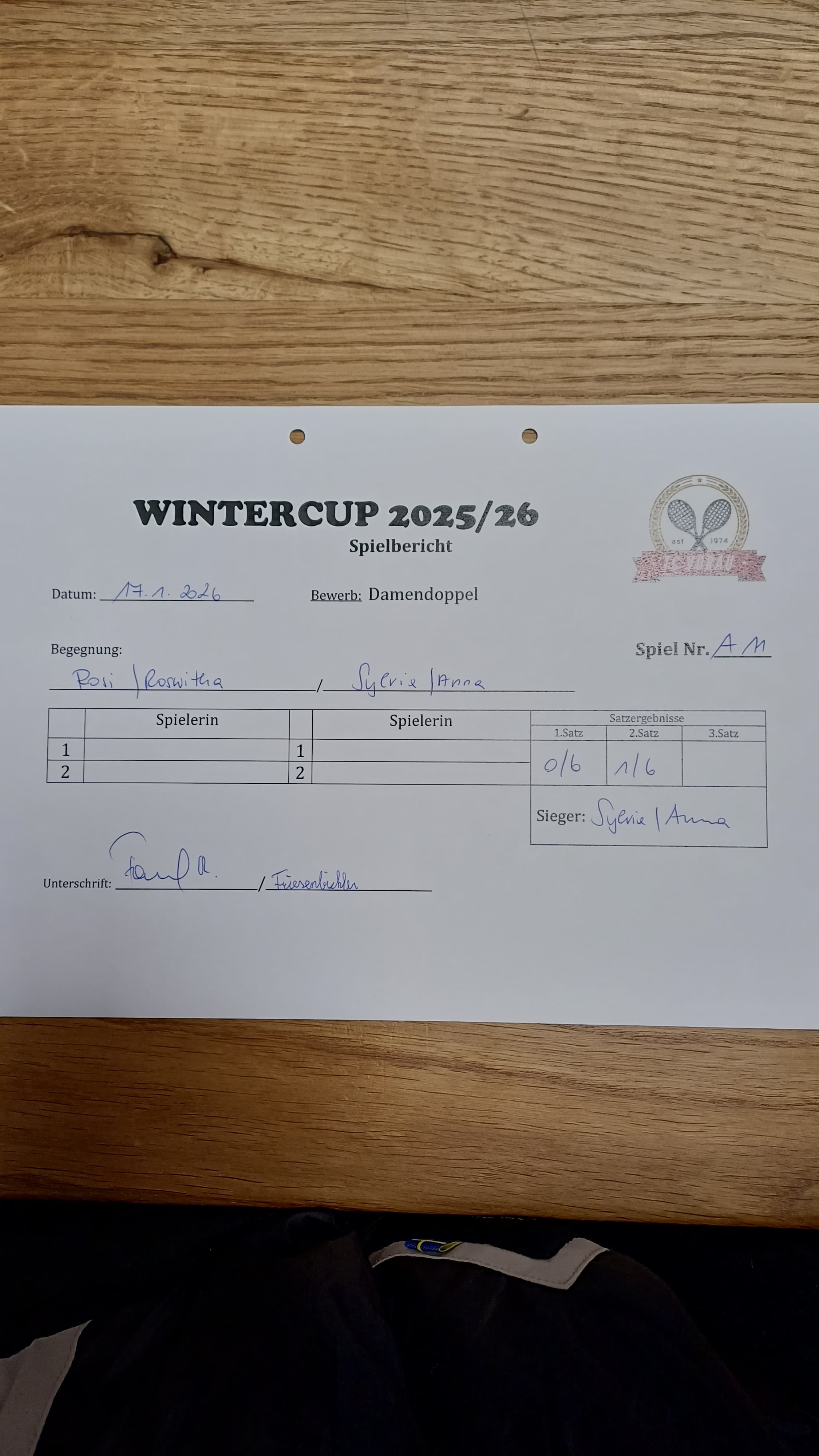 | 17.01.2026, 17:00 | Rosi & Roswitha | : | Sylvia & Anna | 0:6 1:6 | Herunterladen |
