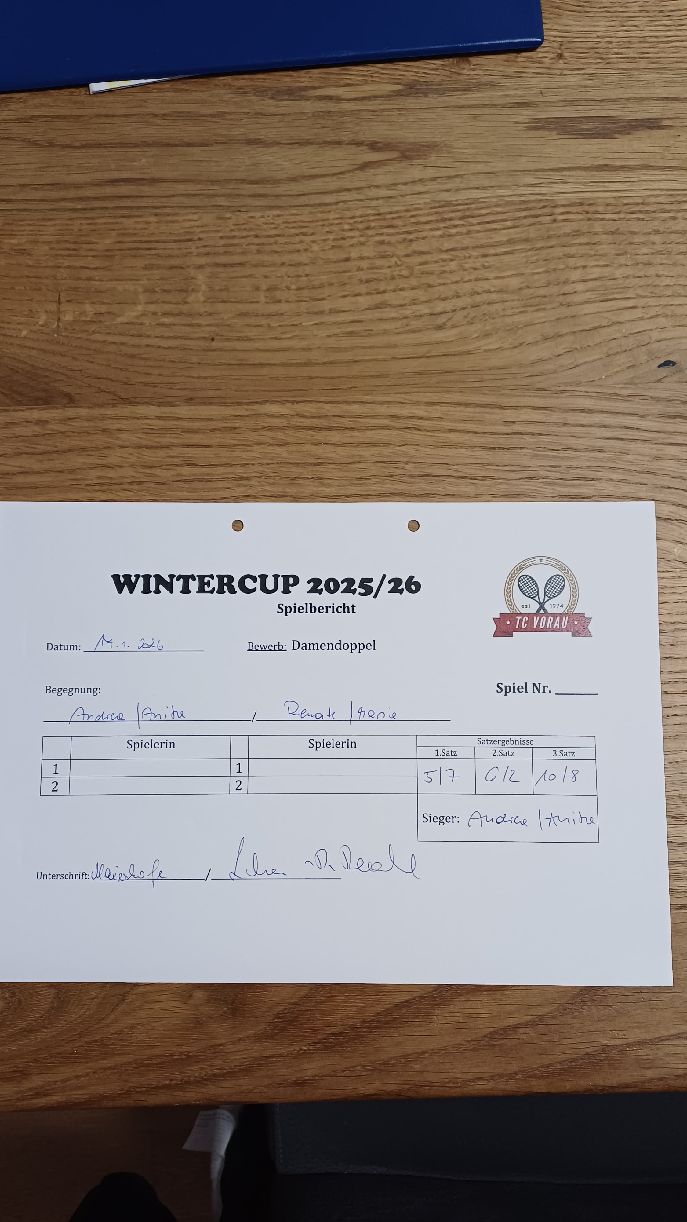 | 07.02.2026, 18:30 | Andrea(V) & Gabi | : | Helga & Maria M. | | - |