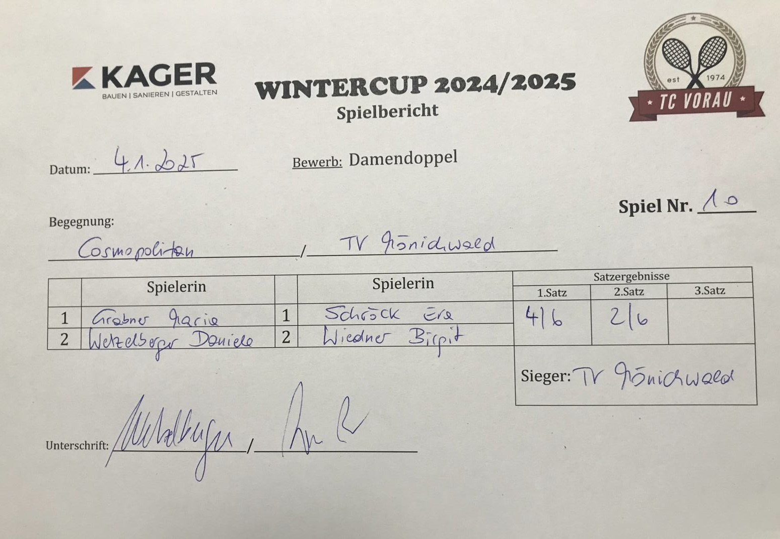 | 04.01.2025, 17:00 | COSMOPOLITAN | : | TV Mönichwald | 4:6 2:6 | Herunterladen |