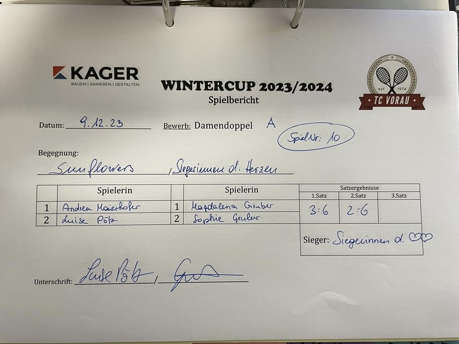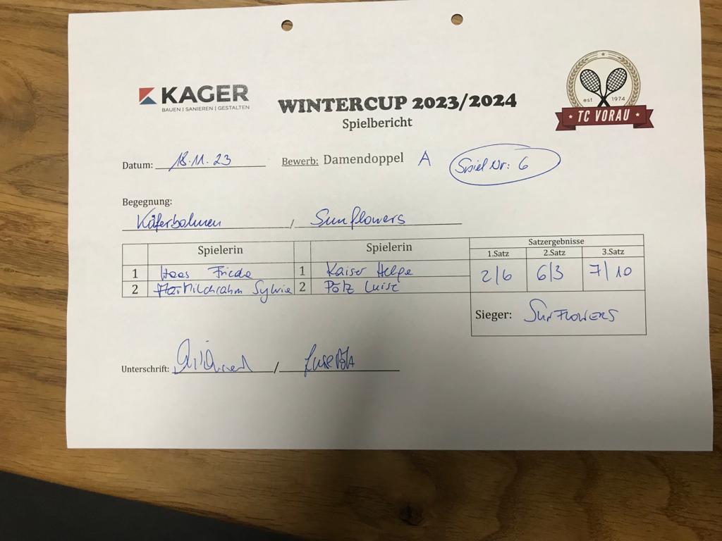 18.11.2023, 17:30KÄFERBOHNEN:SUNFLOWERS2:6 6:3 7:10Herunterladen