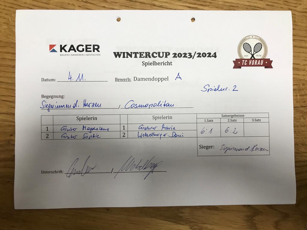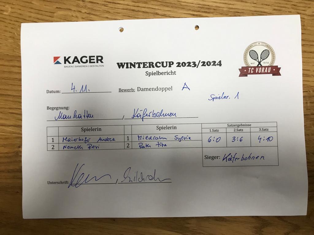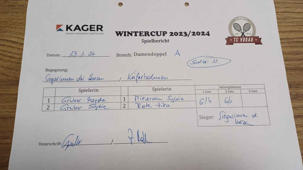 13.01.2024, 17:30SIEGERINNEN der HERZEN:KÄFERBOHNEN6:4 6:0Herunterladen