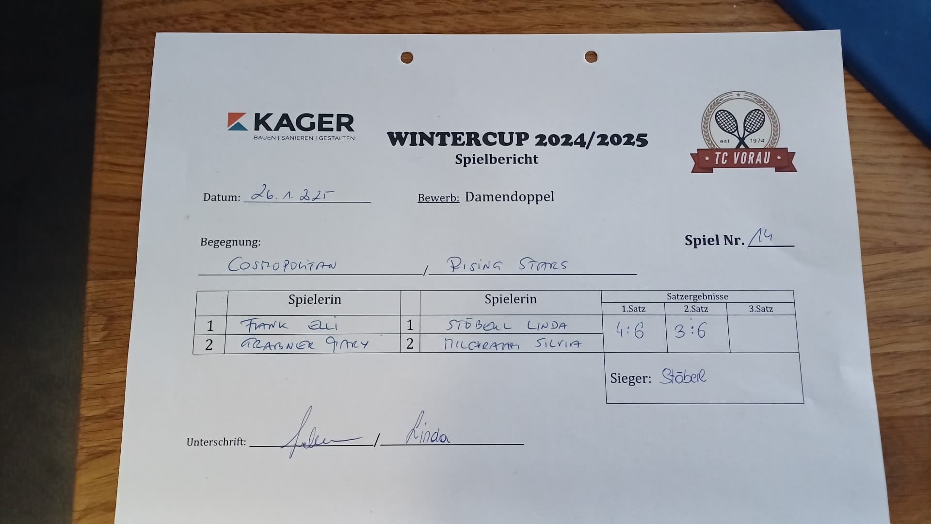 25.01.2025, 17:00COSMOPOLITAN:Rising Stars4:6 3:6Herunterladen