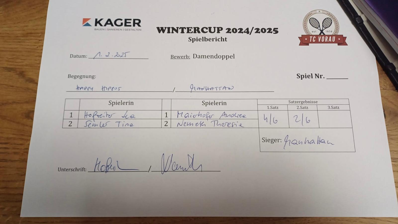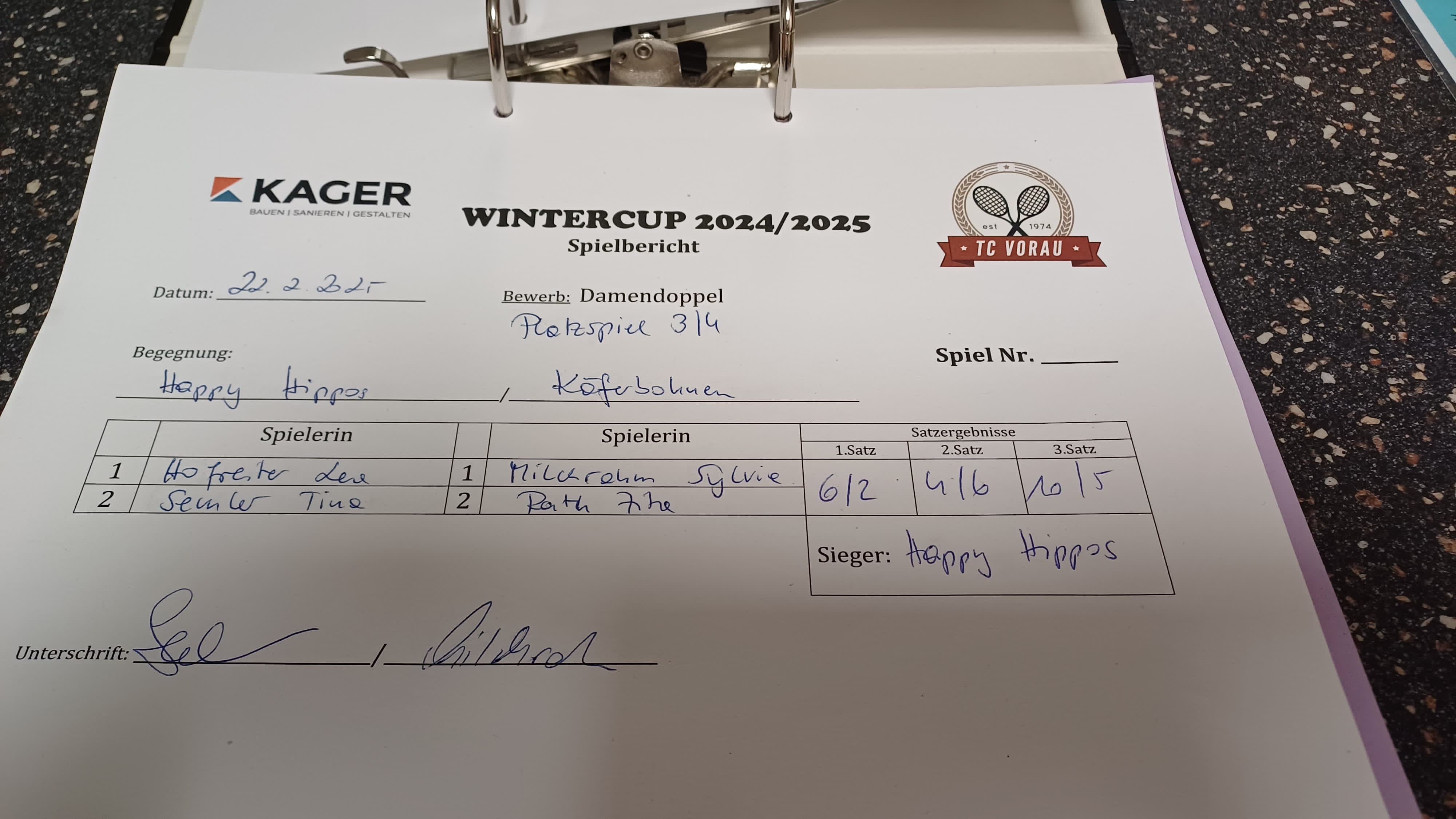 22.02.2025, 16:00Happy Hippos:KÄFERBOHNEN6:2 4:6 10:5Herunterladen