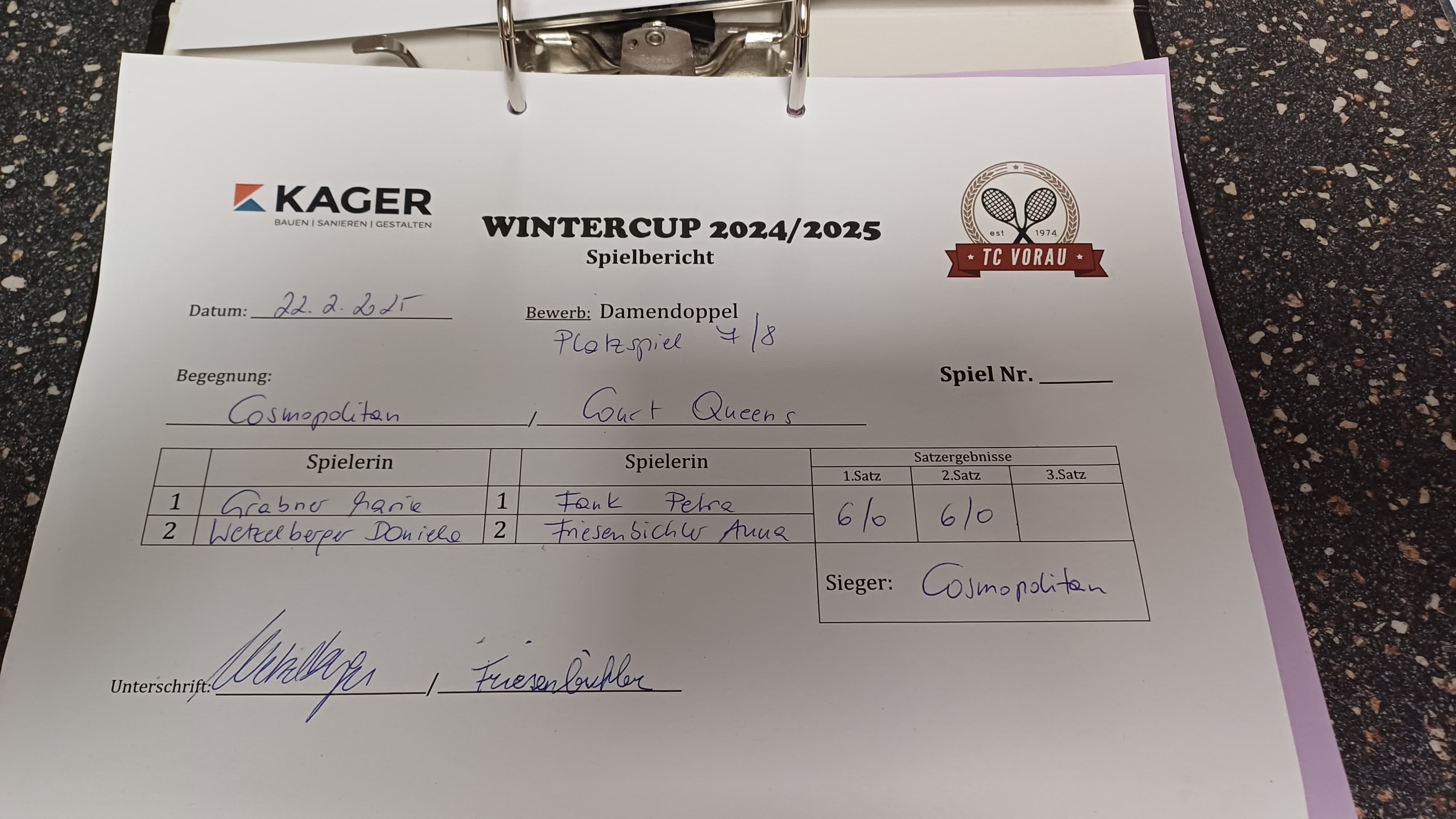 22.02.2025, 14:30COSMOPOLITAN:Court Queens6:0 6:0Herunterladen