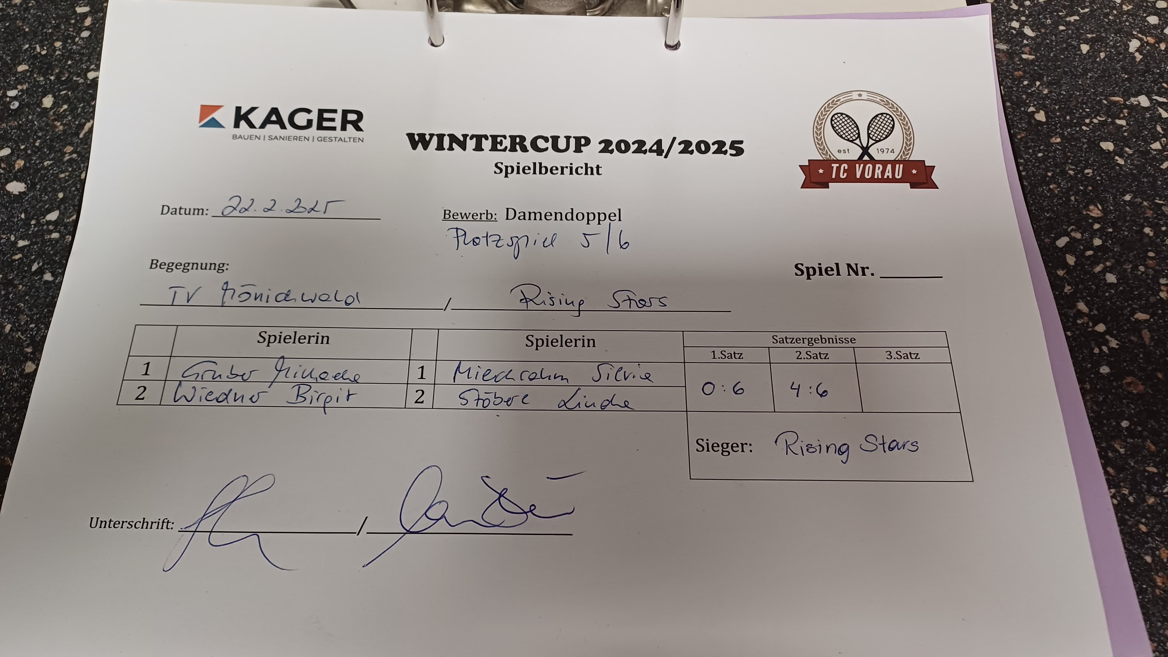 25.01.2025, 17:00TV Mönichwald:Court Queens6:3 6:4Herunterladen