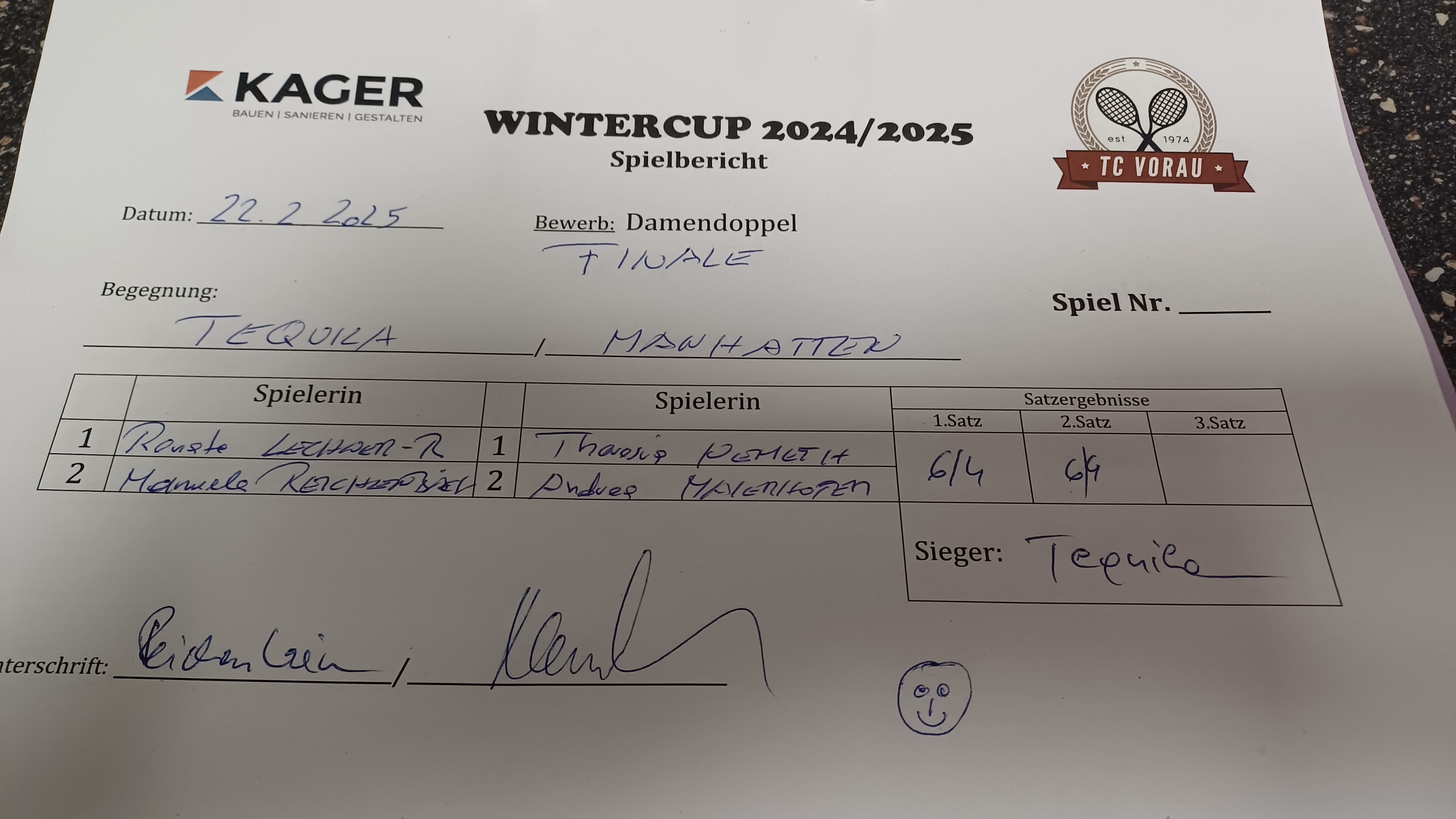 22.02.2025, 17:30TEQUILA:MANHATTEN6:4 6:4Herunterladen