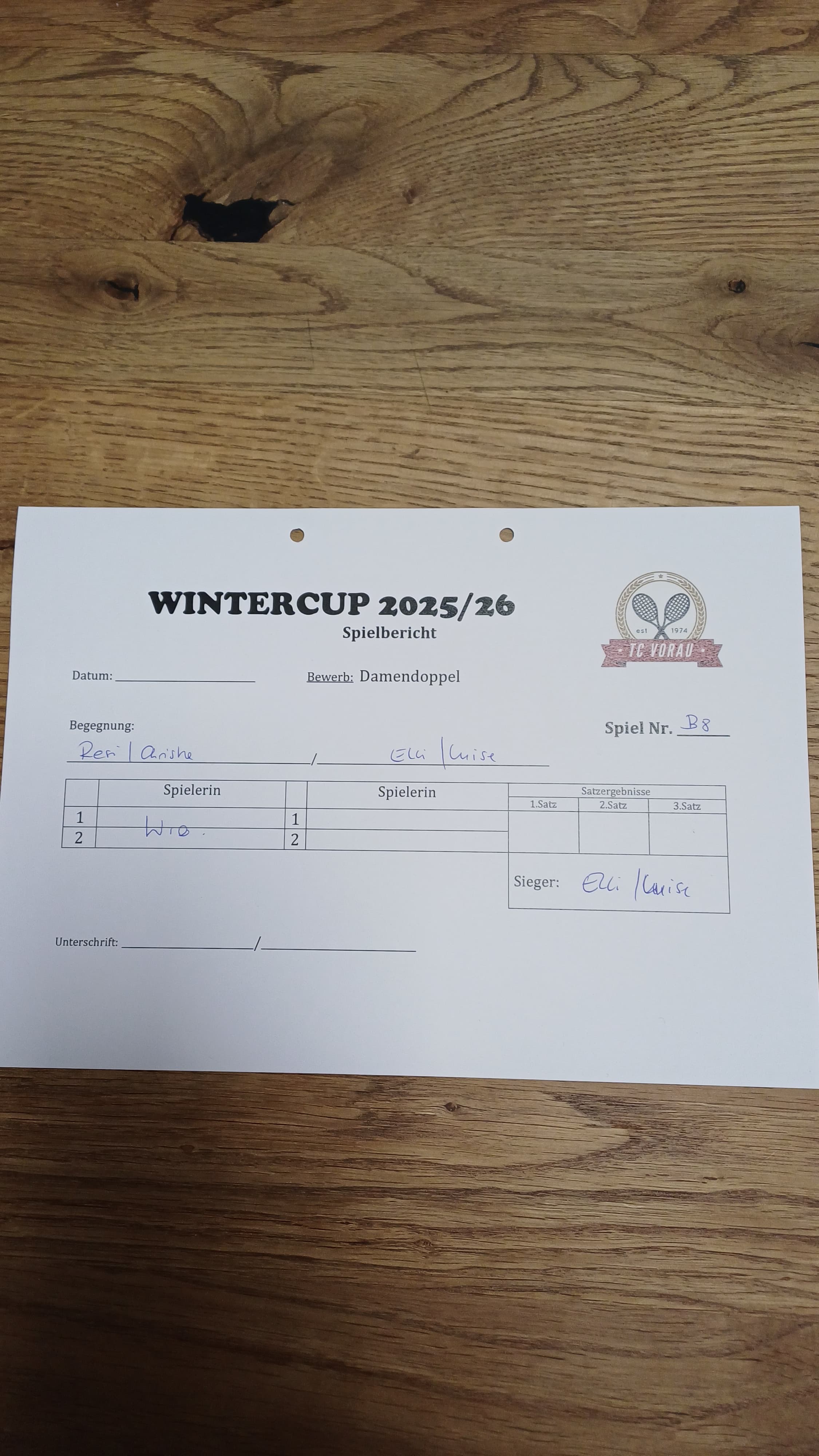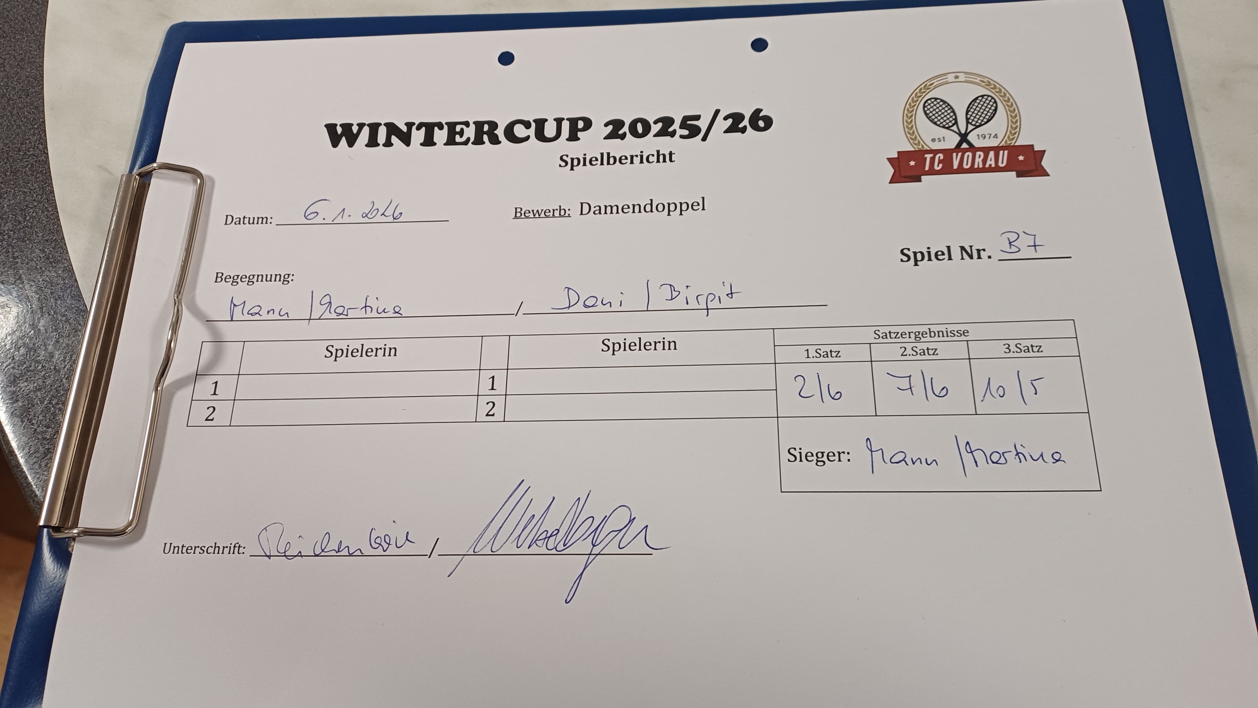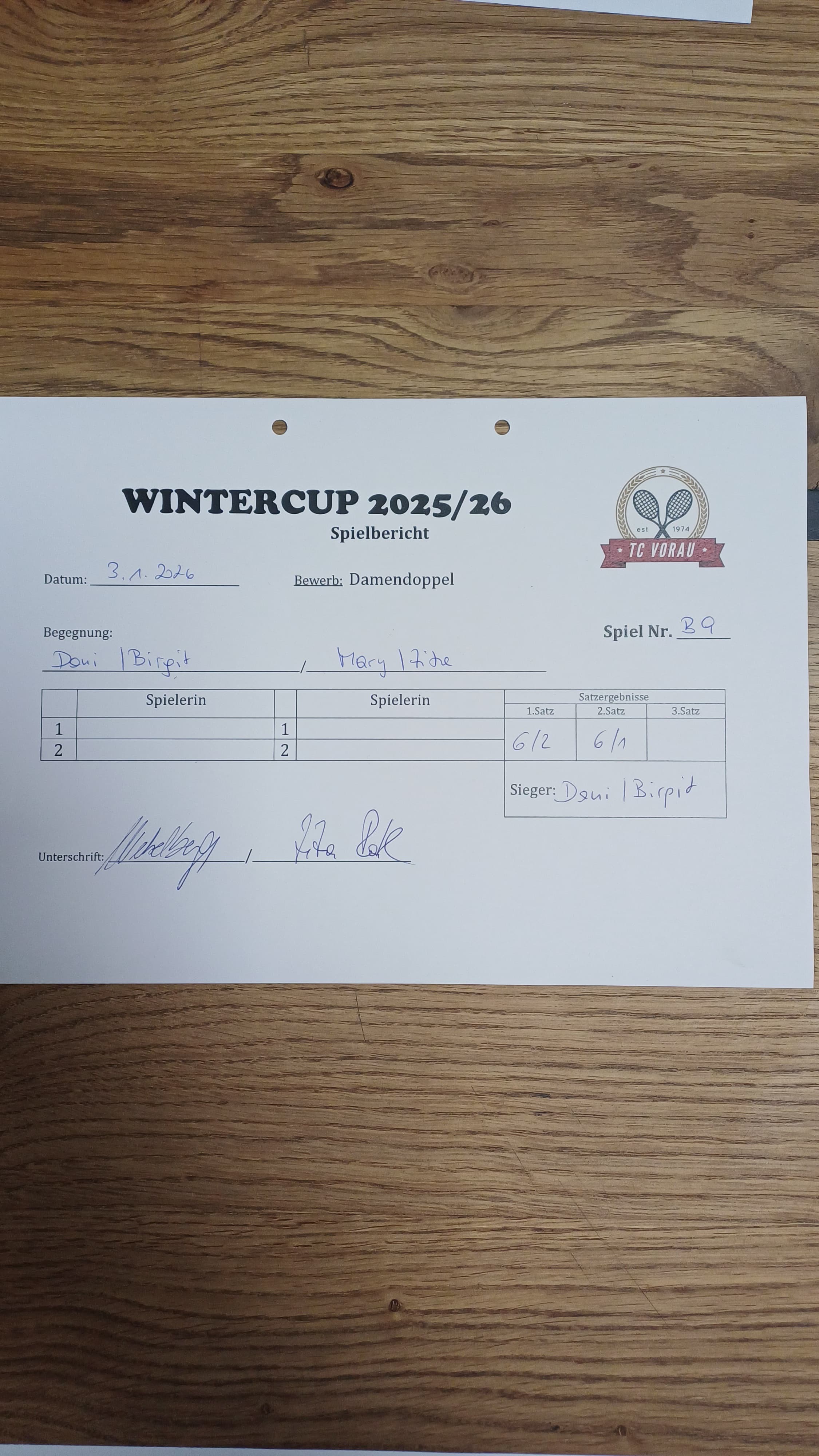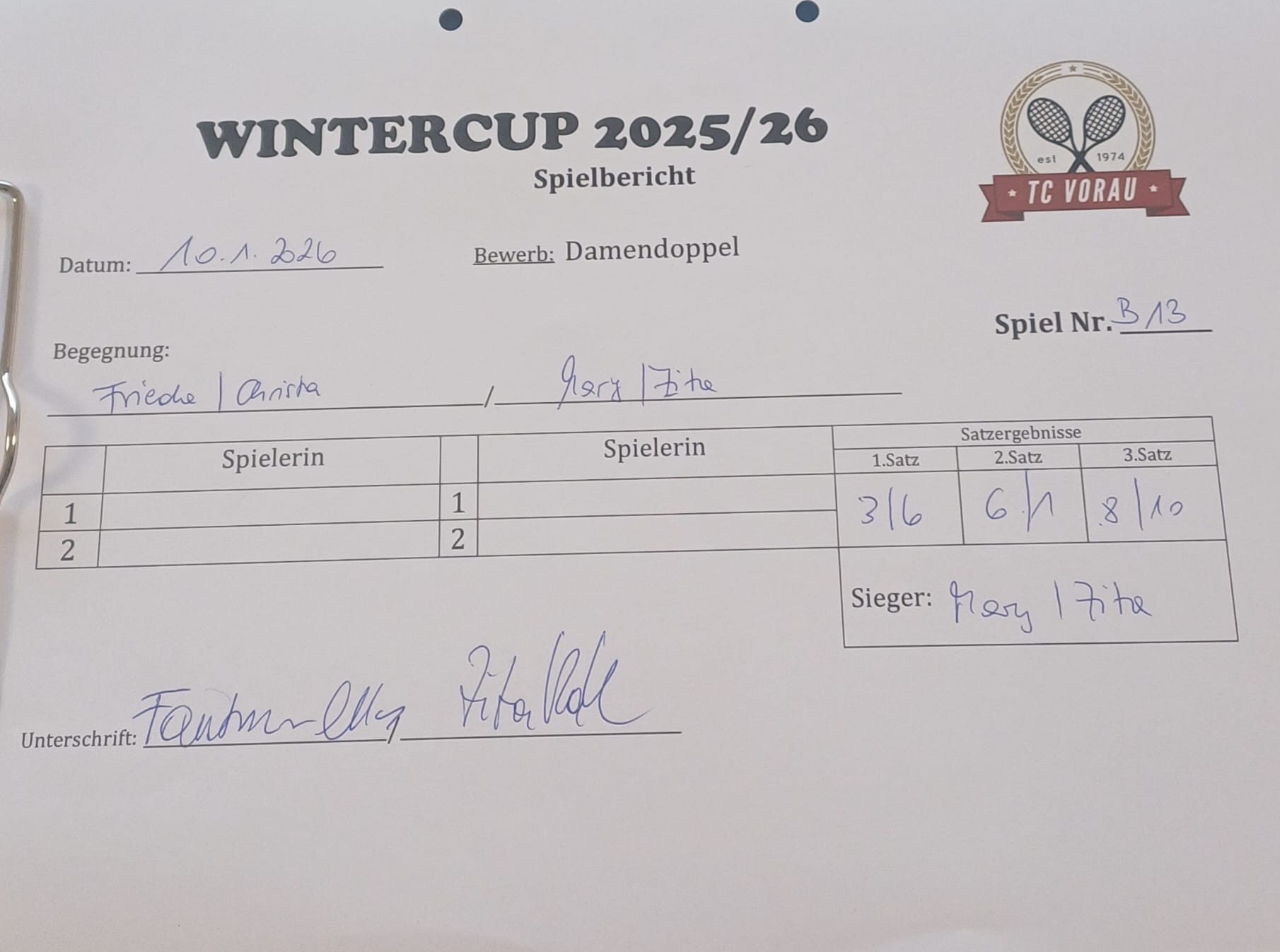 07.02.2026, 17:00Frieda & Christa (gr):Mary & Zita3:6 6:1 8:10Herunterladen