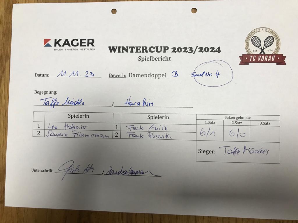 | 11.11.2023, 17:30 | TAFFE MÄDELS | : | HARAKIRI | 6:1 6:0 | Herunterladen |