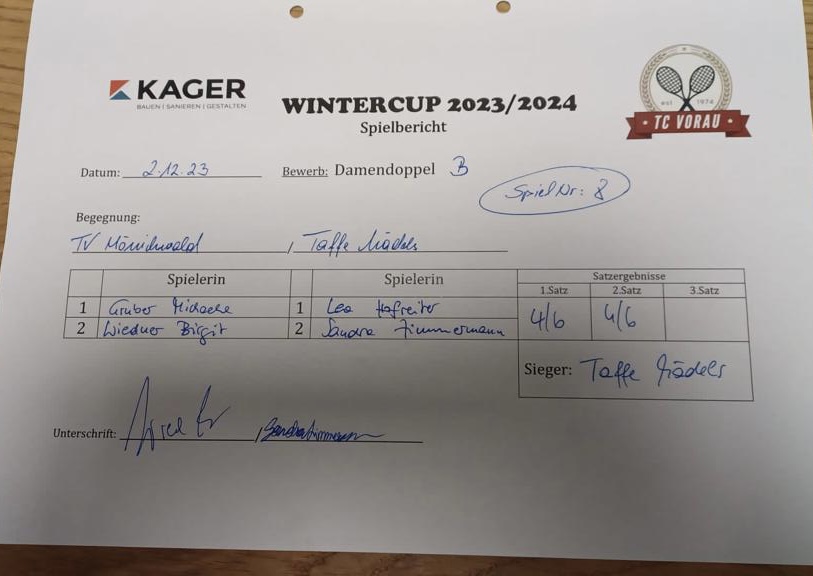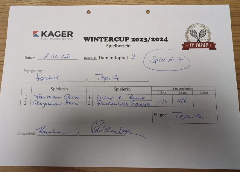 | 11.11.2023, 17:30 | TEQUILA | : | TV Mönichwald | 1:6 6:0 11:9 | Herunterladen |