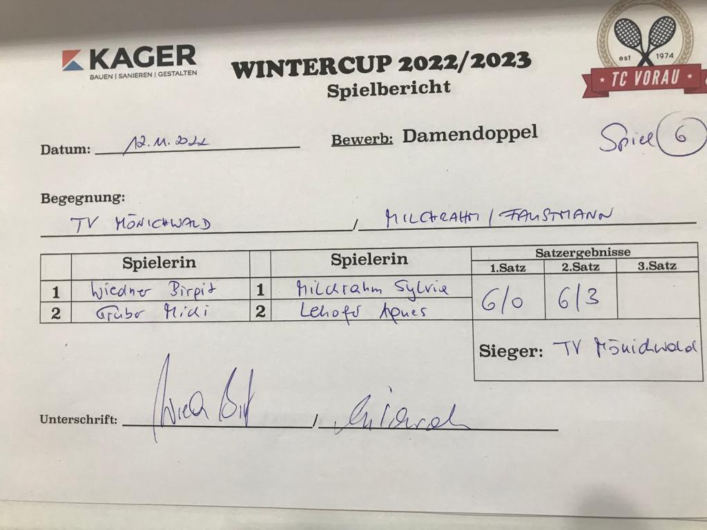 | 28.01.2023, 17:30 | TV Mönichwald | : | Fank/Wetzelberger | 6:3 6:1 | Herunterladen |