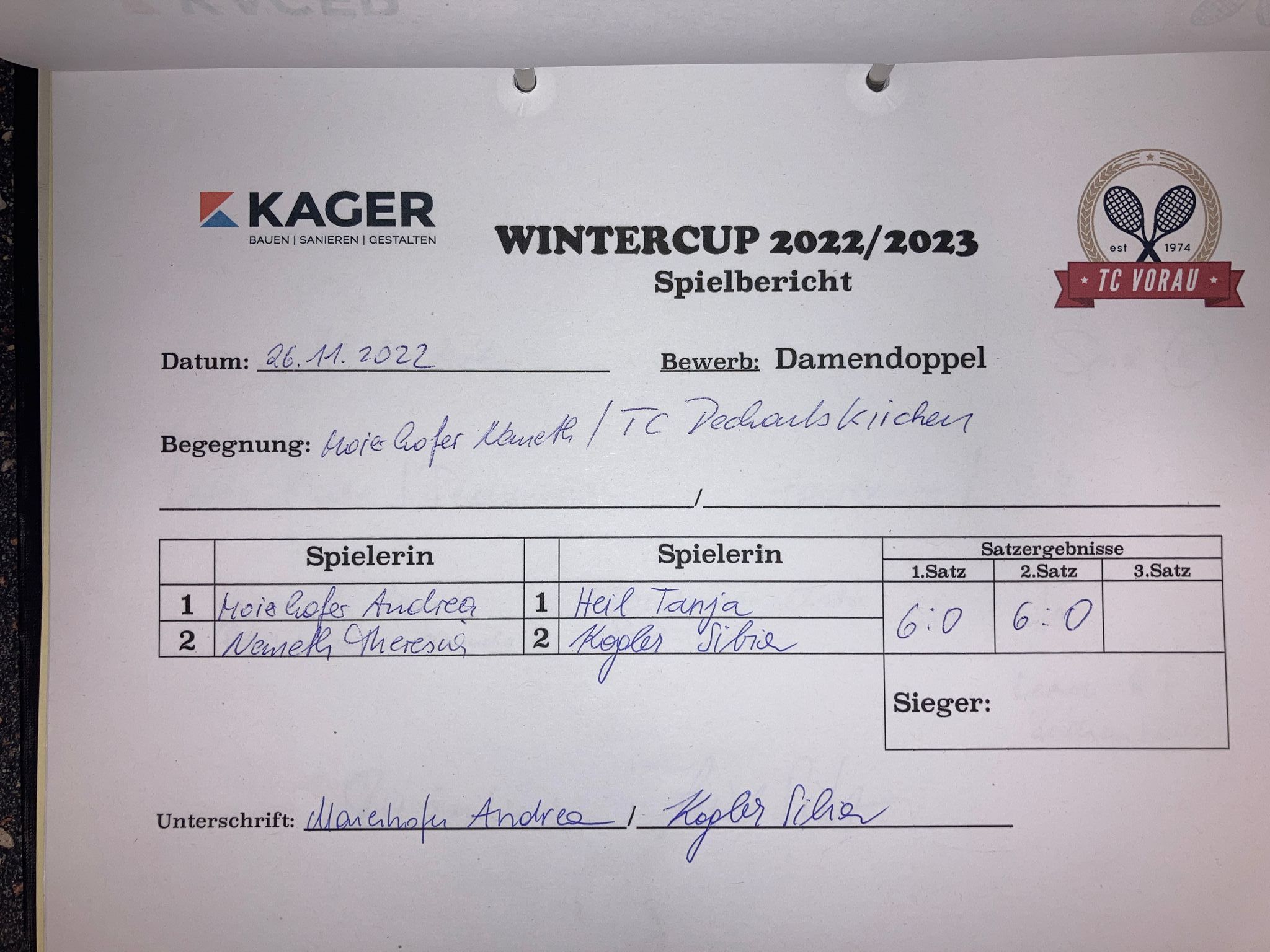 | 12.11.2022, 17:30 | Maierhofer/Nemeth | : | Fank/Wetzelberger | 6:2 6:3 | Herunterladen |