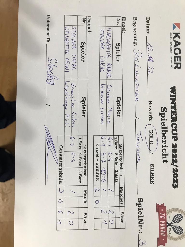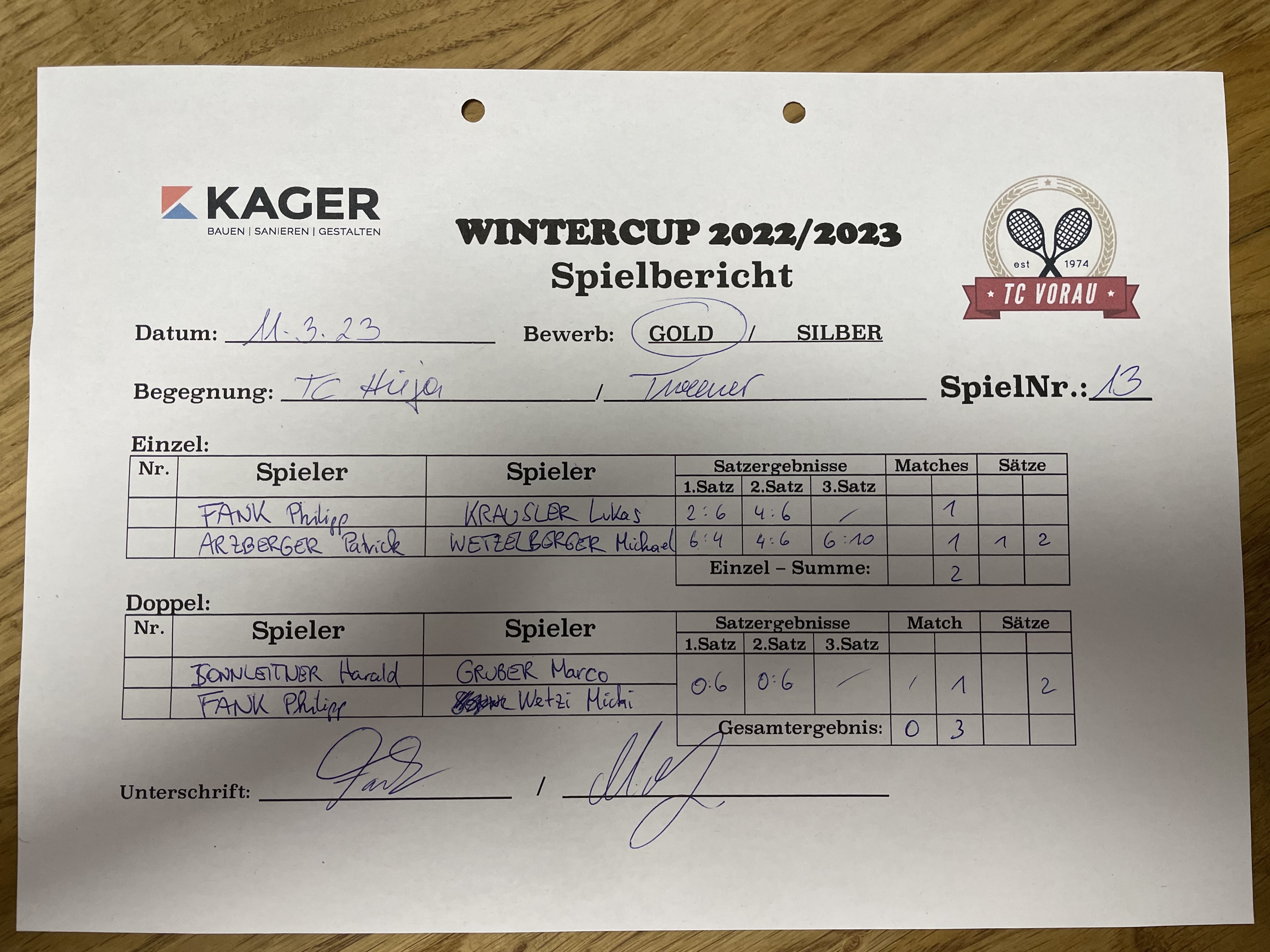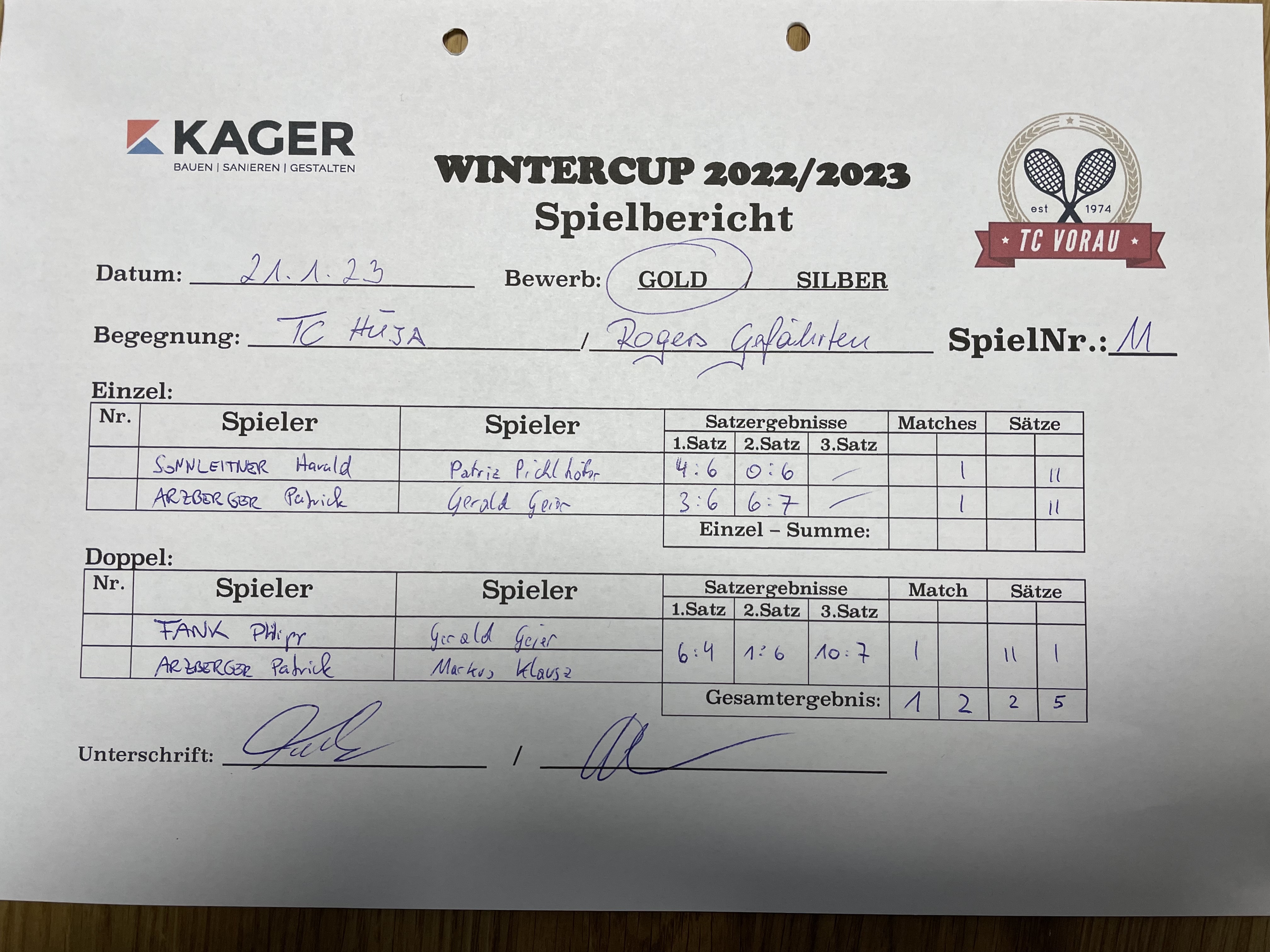 | 21.01.2023, 14:30 * | TC HÜJA | : | ROGERS GEFÄHRTEN | 1:2 | Herunterladen |