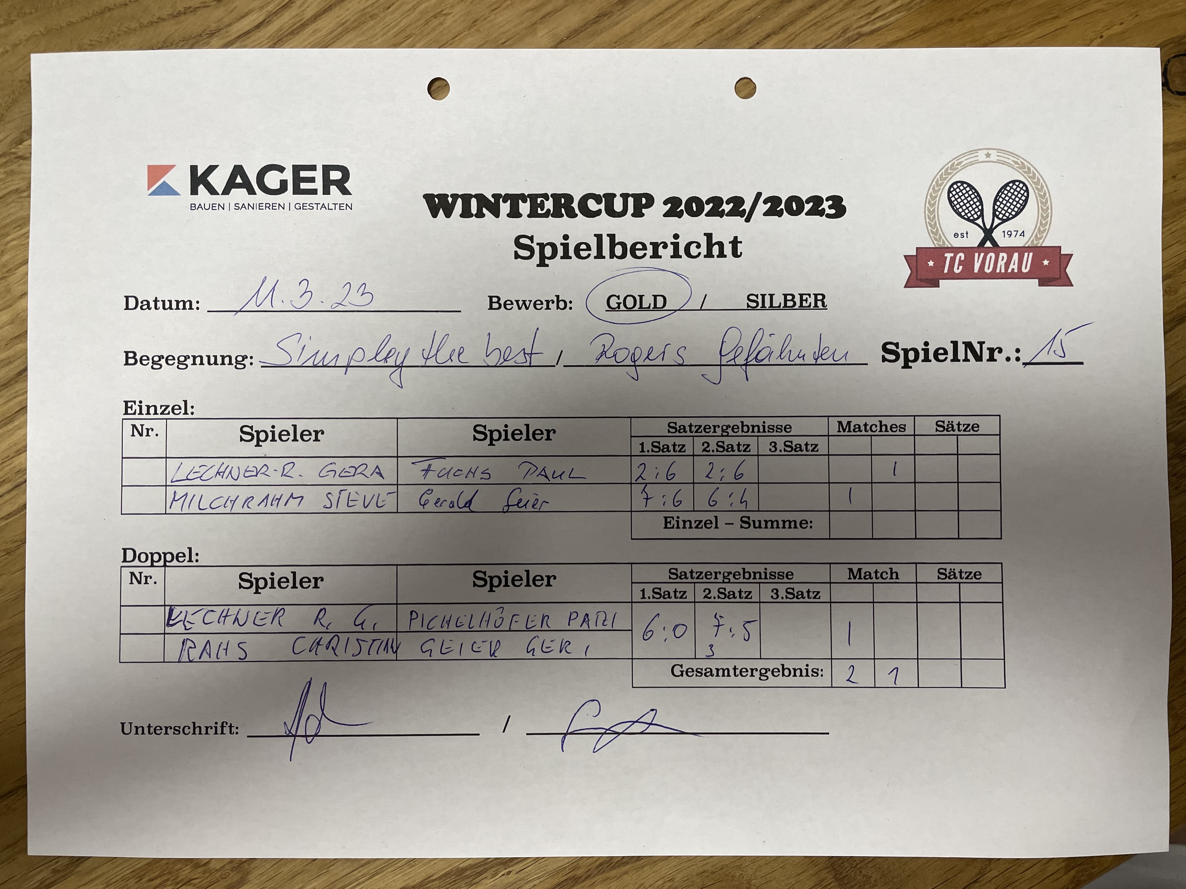 | 11.03.2023, 17:30 | SIMPLEY THE BEST | : | ROGERS GEFÄHRTEN | 2:1 | Herunterladen |
