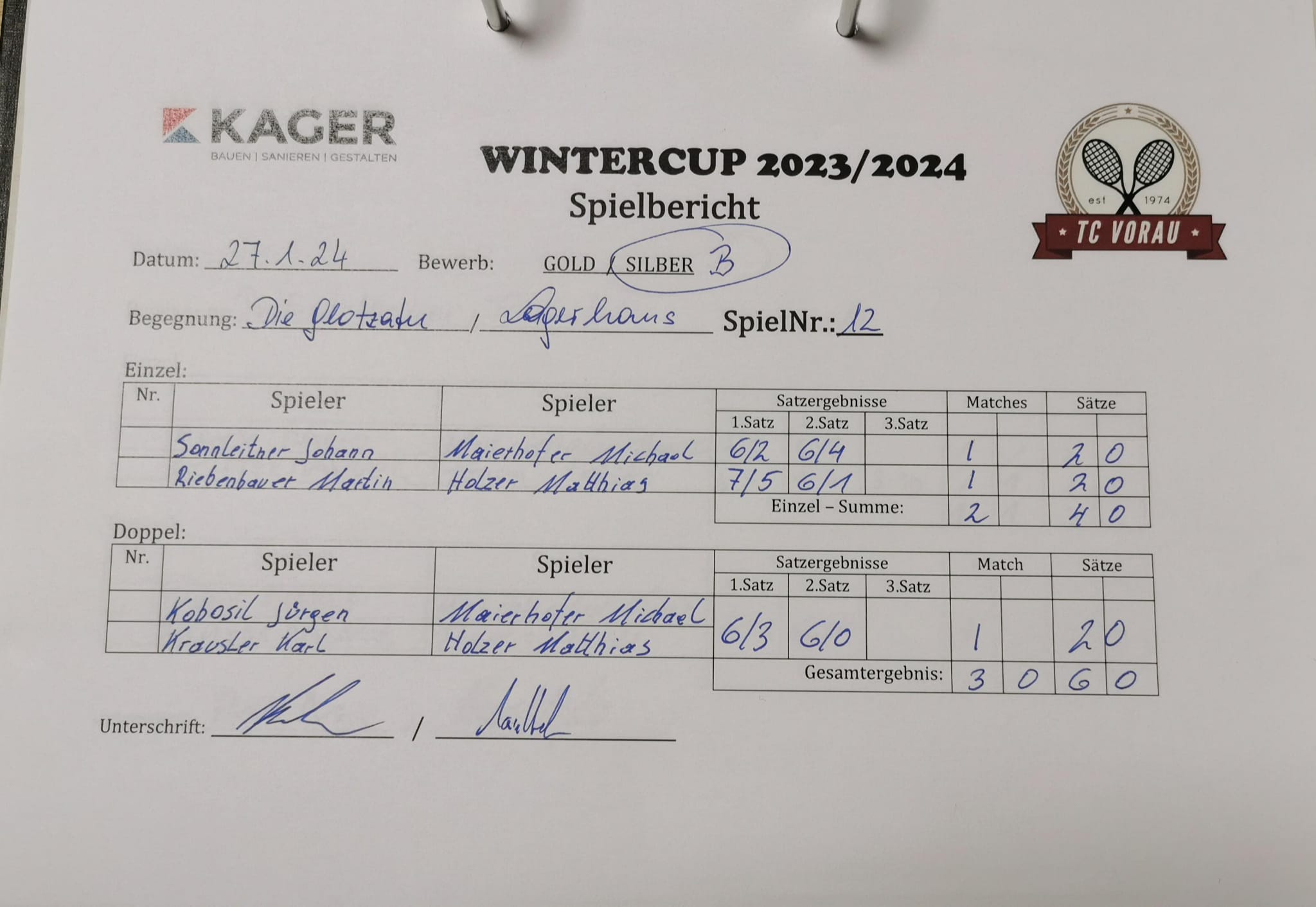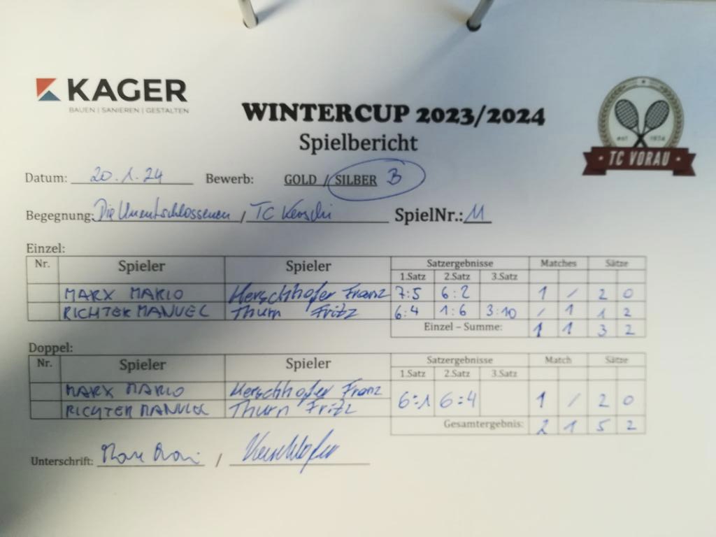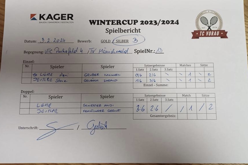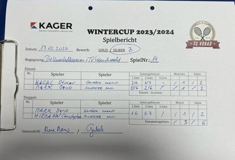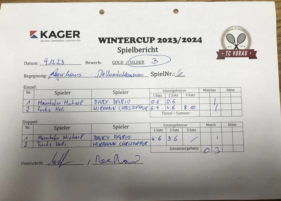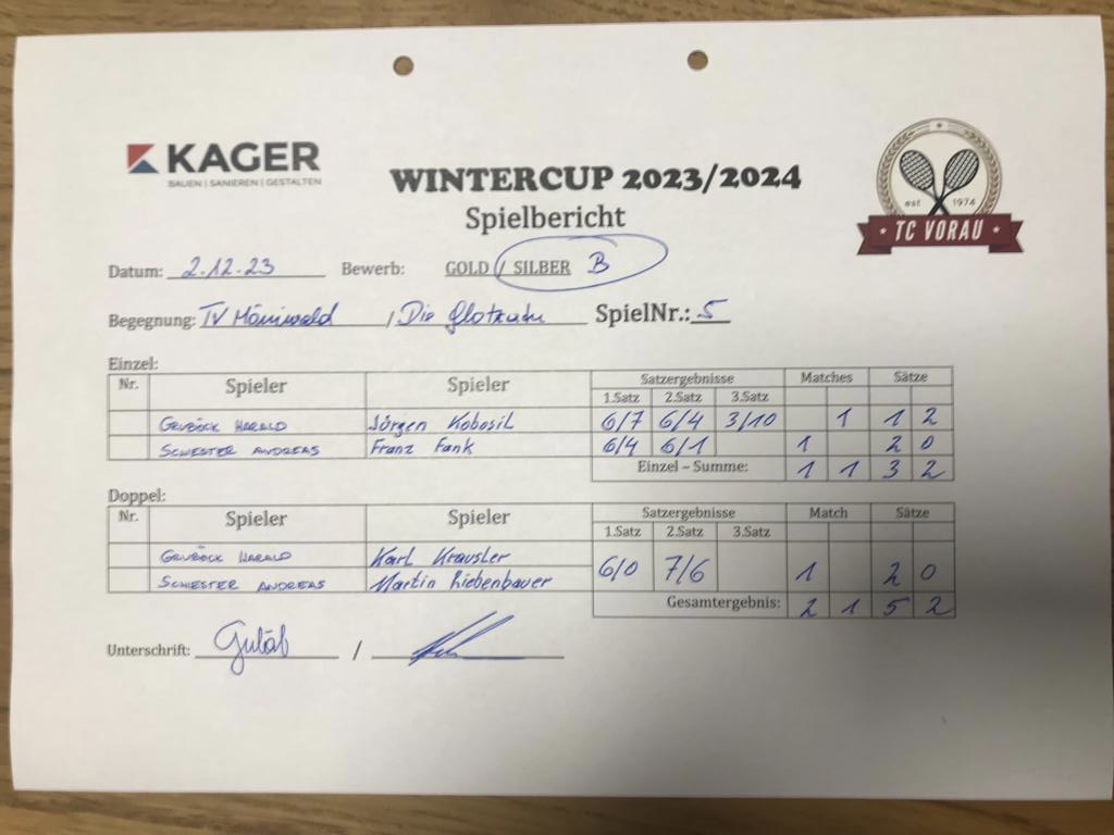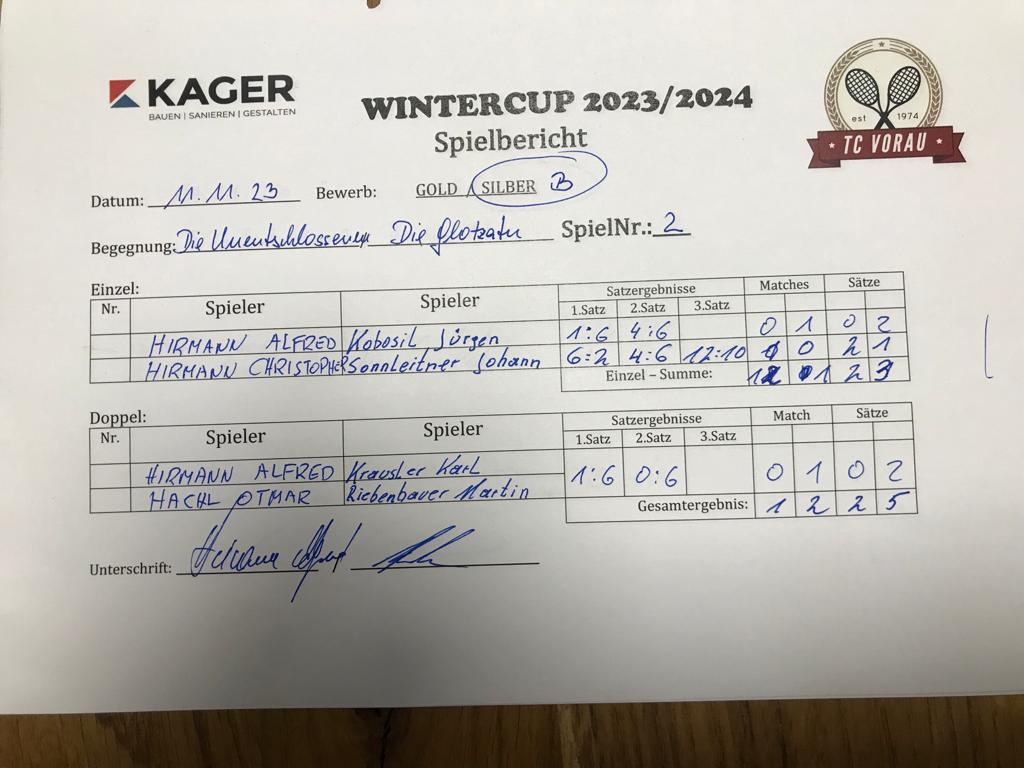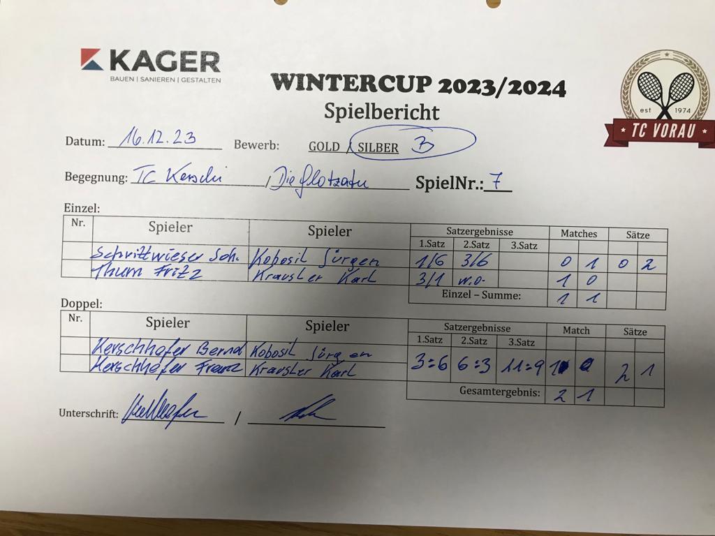 | 16.12.2023, 14:30 * | TC KERSCHI | : | DIE GLOTZATN | 2:1 | Herunterladen |