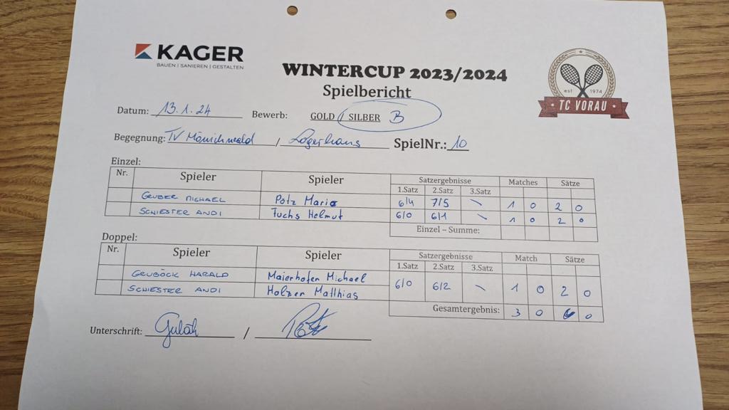 | 13.01.2024, 19:00 | TC MÖNICHWALD | : | LAGERHAUS | 3:0 | Herunterladen |