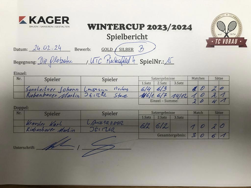 | 04.11.2023, 19:00 | LAGERHAUS | : | UTC PINKALFELD 4 | 3:0 | Herunterladen |
