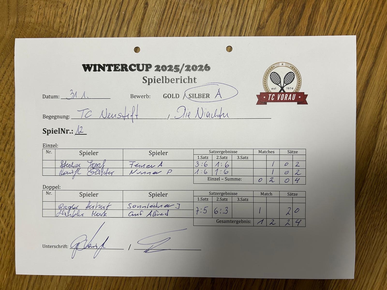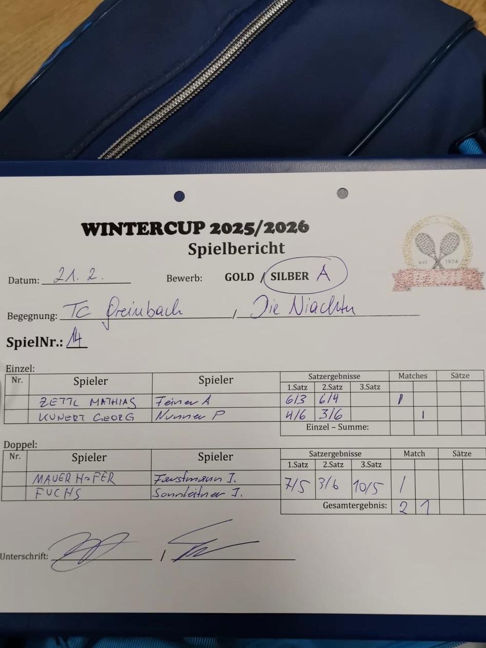 | 31.01.2026, 14:30 * | TC NEUSTIFT | : | DIE NIACHTEN | 1:2 | Herunterladen |