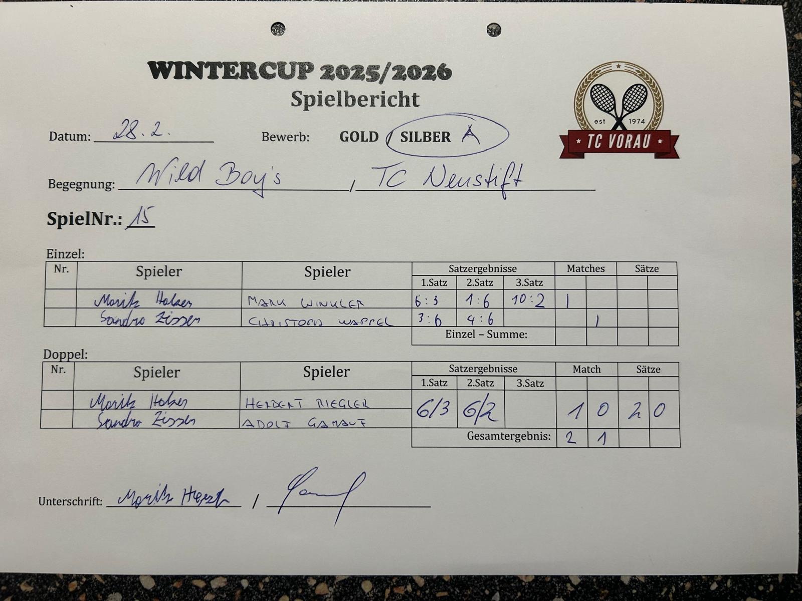 | 28.02.2026, 15:00 | WILD BOYS | : | TC NEUSTIFT | 2:1 | Herunterladen |